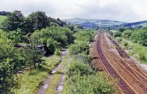 Diggle railway station was a station that served the village of Diggle on the Huddersfield Line to the north of Uppermill. Immediately to the west of the Standedge tunnels, it was opened in 1849 along with the first rail tunnel and closed to passenger traffic in 1968.[1] In its heyday, the station had platforms serving all four lines but little trace remains of it today—all of the buildings and much of platforms having been demolished (although the nearby signal box remains operational).