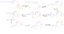 The backbone of HSAF is formed through a hybrid PKS-NRPS cluster containing one nonribosomal peptide synthase (NRPS) module and one polyketide synthase (PKS) module.[2][6][7][8] The single PKS module functions in a non-canonical fashion in that it is an iterative type I PKS responsible for the generation of the two unique polyketides needed in the backbone of HSAF using malonyl-CoA as both the starter and extender unit, while the NRPS module is responsible for the linking of the polyketides to an L-ornithine unit and the initial cyclization to create the tetramate back bone.[2][7][8] The coding region related to HSAF production contains a PKS-NRPS with a total of 9 domains, (KS-AT-DH-KR-ACP-C-A-PCP-TE), while a cascade of FAD-dependent redox reactions (OX1-OX4) flank the PKS-NRPS cluster proposed to be responsible for formation of the 5,5,6-tricyclic system, there are additional coding regions for a putative regulator, an arginase for L-ornithine production from Arginine, and a transporter which flank the PKS-NRPS.[2][3][7][8]