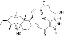 (3E,5S,7S,8R,9S,10S,11S,13R,15R,16S,18Z)-11-Ethyl-7,24,28-trihydroxy-10-methyl-21,26-diazapentacyclo[23.2.1.05,16.08,15.09,13]octacosa-1(28),3,18-triene-2,20,27-trione | |