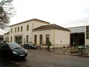 Gare de Dijon-Porte-Neuve is an SNCF railway station building without a ticket window. It is equipped with a TER automated ticketing system and also has nearby parking for bicycles and other vehicles. The train platforms are situated on a concrete walkway, with stairways providing access. The station is served by TER Bourgogne-Franche-Comté trains on the line from the Dijon-Ville station to Is-sur-Tille.[8] The station is also open for freight.[9]