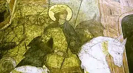 Today, on the north wall of the Throne Hall in the Moscow Kremlin, there's a fresco of Queen Dinar who's mounted on a white horse, victorious over the enemy.