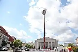 By August 2009, Dinner in the Sky operated in more than a dozen countries, including Canada and China. At that time, Hinden planned to move his restaurant to the Las Vegas Strip, at the site of a vacant building previously used as a sales office for the nearby Trump International Hotel. Hinden, who had 15 employees working for his restaurant service, hoped to begin operating six days a week at the new location. However, Steve Wynn, owner of the Wynn and Encore properties across the street, objected to the plan, calling Dinner in the Sky a "carnival-like attraction."[8] Boyd Gaming also opposed the relocation, which would place the restaurant near its Echelon Place project.[9] Hinden's relocation plans were rejected by county officials who noted safety concerns and felt that such a restaurant did not belong on the Las Vegas Strip.[10]