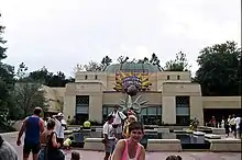 Guests enter an underground research facility where the time rover will pick them up. Once the riders get on, they pull forward for a seatbelt check. They then proceed to a "security checkpoint. Suddenly, alarms and warning lights go off, indicating that Seeker's modified coordinates have been detected, and the vehicle is unauthorized to continue. Lurching forward, Seeker ignores the alarms and moves the vehicle into the "Time Tunnel", where flashing lights temporarily blind the riders. When their vision returns, they realize they have been transported to prehistoric times. When they land, guests can smell the forest and trees around them while they come across a Styracosaurus, an Alioramus, a Parasaurolophus (identified only as "hadrosaur"), and a Velociraptor (identified only as “raptor”). Seeker, their driver, then locks onto the signal of the tracker on and the ride becomes much bumpier. The scanner built into the rover picks up a big dinosaur, and Seeker thinks that it is the Iguanodon. He pulls the rover to a full stop, but find out that the dinosaur is a Carnotaurus. The rover takes off away from the Carnotaurus, and finds another big dinosaur with the scanner. The dinosaur is a Saltasaurus (identified only as "sauropod").[2] The rover starts to pull away again. The timer that counts down to the asteroid that causes the mass extinction claims that the asteroid is going to strike in 90 seconds, and the rover starts to pick up the pace. The scanner finds an Cearadactylus (identified only as "pterodactyl") that is flying directly towards them. The rover drives down a small hill and dodges the pterosaur. Now in almost complete darkness, the rover speeds through the forest and picks up a pack of Compsognathus on the scanner that is running through the forest with them. The rover falls down another small hill and loses traction. The Carnotaurus the riders saw before appears in front of them, and walks towards the Time Rover. Seeker turns on the four-wheel drive system and successfully gets the rover away just before the Carnotaurus gets the rover. The rover performs evasive maneuvers to dodge the meteors in the darkness. After dodging the meteors successfully, the rover then stumbles upon the Carnotaurus once again, which tries to lunge at them. This is where the ride takes the rider's photo. The rover takes off again into a small section of the forest where some of the trees are falling down. The scanner finds the Iguanodon, but Seeker decides to abort the mission and bring the rover back, as the asteroid is about to strike. A tree was about to fall on the rover, but the Iguanodon catches the tree and the rover proceeds. The asteroid strikes the ground and creates a flash of light, and the Carnotaurus is seen giving one last lunge. However, at the last second, the rover transports back to the institute, and somehow, the Iguanodon came with them. The rover then proceeds to the loading station while videos on tv monitors show the Iguanodon roaming around the institute. On the right, guests can view a large mirror, which was added for a peppers ghost effect showing that the Iguanodon traveled with them. However, this effect was never implemented. The riders then get off and proceed to some stairs, which leads to the gift shop.