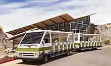 In July 2006, the Quarry Visitor Center was closed due to structural problems that since 1958 had plagued the building because it was built on unstable clay. The decision was made to build a new facility elsewhere in the monument to house the visitor center and administrative functions, making it easier to resolve the structural problems of the quarry building while still retaining a portion of the historic Mission 66 era exhibit hall.[18] It was announced in April 2009 that Dinosaur National Monument would receive $13.1 million to refurbish and reopen the gallery as part of the Obama administration's $750 billion stimulus plan.[19] The Park Service successfully rebuilt the Quarry Exhibit Hall, supporting its weight on 70-foot steel micropile columns that extend to the bedrock below the unstable clay.[20] The Dinosaur Quarry was reopened in Fall 2011.