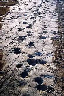 ![]() Some dinosaur footprints from the Dinosaur Quarry of Altamura | |