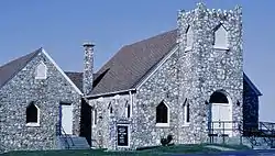 Dinwiddie Presbyterian Church and Cemetery is a historic Presbyterian church located near Hillsville, Carroll County, Virginia. It was one of the six "rock churches" founded by Bob Childress It was built in 1948, and is a white quartz rock-faced frame building. The main block is front-gabled with nave plan and Gothic-style tower at the front, through which the edifice is entered. The tower has corner parapets with crenellations of jagged, light-colored stone fragments between each corner. Attached to the main block is a 1 ½-story, front-gabled addition. The contributing cemetery is enclosed by white quartz pillars connected by black pipes.[3]