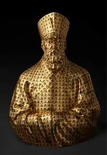 The Matteo Ricci[19] sculpture was made in China,[20] for the ITALY Pavilion at Shanghai World Expo 2010,[21] on the 400th anniversary of his death.[22] At the end of the show, it was also displayed for about two years at the Italian Embassy in Beijing. The sculpture is now property of the Government of the Marche Region and it stands today at Palazzo Ciccolini University of Macerata , while the plaster model is permanently placed at the main entrance of the Consulate General[23] of Italy in Shanghai, China.[24][25][26][27] In 2013 Finishing Performance of the original model in plaster of Matteo Ricci sculpture at the Italian Centre, former Italy Pavilion of Shanghai World EXPO 2010, Shanghai (China)[28][29]