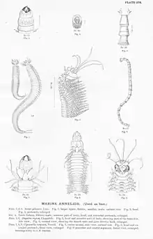 | Head and anterior part of body, showing part of the branchiae, illustrated by Augusta Foote Arnold. | |
