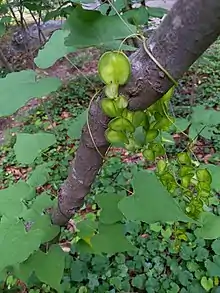 Dioscorea villosa is a species of twining tuberous vine which is native to eastern North America. It is commonly known as wild yam, colic root, rheumatism root, devil's bones, and fourleaf yam,.[2] It is common and widespread in a range stretching from Texas and Florida north to Minnesota, Ontario and Massachusetts.[1][3][4][5][6]