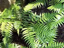 Diplazium melanochlamys is a ground fern only found on Lord Howe Island in the relatively remote Pacific Ocean between Australia and New Zealand. A common plant growing in forest. Most often seen on the southern half of the island. It can be seen between sea level and the summits of Mount Gower and Mount Lidgbird.