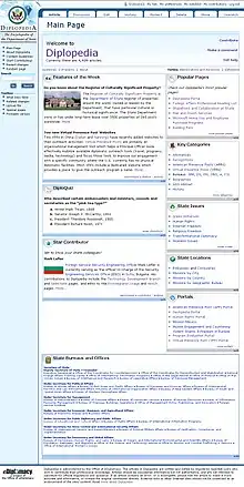 Diplopedia,[1] billed as the Encyclopedia of the United States Department of State, is a wiki running on a State internal Intranet, called "OpenNet". It houses a unique collection of information pertaining to diplomacy, international relations, and Department of State tradecraft.