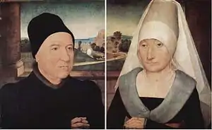 The Diptych of an elderly couple is a pair of bust-length wedding portraits by Hans Memling, which were formerly attached with pegs and were split some time before they were sold separately in 1894. One is in the collection of the Gemäldegalerie and the other is in the collection of the Louvre.[1] When viewed side by side the landscape background joins up to form a whole.
