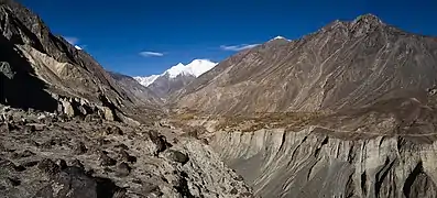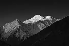 Diran (Urdu: دیرن) is a mountain in the Karakoram range in Nagar Valley and Bagrot Valley Gilgit-Baltistan, Pakistan. This 7,266-metre (23,839 ft) pyramid shaped mountain lies to the east of Rakaposhi (7,788m).