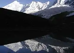 Reflection of Diran (left, 7,266m) and Rakaposhi (right, 7,788m, peak not visible) from Tagafari base camp