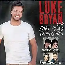 The Dirt Road Diaries Tour was a headlining tour by American country music artist Luke Bryan, in support of his EP Spring Break…Here to Party and his fourth studio album Crash My Party (2013). It began on January 17, 2013 in Evansville, Indiana and finished on October 26, 2013 in West Palm Beach, Florida.