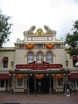 Disneyland: The First 50 Magical Years was an exhibit about the history of Disneyland. It was located on Main Street, U.S.A. in the Opera House, which since 1965 had housed Great Moments with Mr. Lincoln. In the lobby are displays featuring models, photos, concept art and sculptures associated with many Disneyland attractions. There was also a scale model of Disneyland as it appeared in the summer of the opening year 1955.[1]