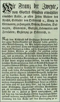 ![]() Printed version of the abdication of Emperor Francis II. | |