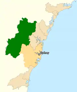 The division is located to the west of Sydney, and today it covers a large part of the Blue Mountains, as well as the Hawkesbury region on Sydney's western fringe.