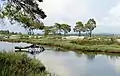 Among the largest in the Mediterranean Sea, the lagoon of Karavasta has been recognised as a wetland of international importance by designation under the Ramsar Convention.[6][7] It is separated from the Adriatic Sea by a large strip of sand and was formed by the sediments of which has been discharged by Shkumbin and Seman.[8][9] Located near the sea, the park experiences mediterranean climate, with temperatures that ranges between 12 °C (54 °F) in February and 24 °C (75 °F) in August.[8]