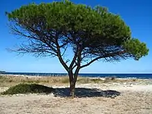 The forests of the park are diverse, ranging from conifer to deciduous trees and woodlands.[3] A large part of the forest resource is primarily located in the northern corner of Karavasta between the sandy beaches and the estuary of Shkumbin. Pine trees remain an increasingly dominant feature of the park represented by species such as aleppo and stone pine.[17][18][19] There are also different species of trees found in the park amongst them junipers, willows, oak, alder, elm and ash.[17]