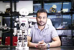 - He is the developer and mind behind Manav (India's first completely indigenous 3D printed humanoid robot)[3][4][5]