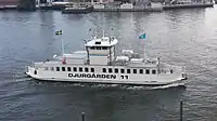 The Djurgården ferry (Swedish: Djurgårdsfärjan) is an inner city ferry route in Stockholm, Sweden. It runs from a terminal near Slussen, in the old town of Gamla Stan, to Allmänna gränd on the island of Djurgården, with an optional stop at the island of Skeppsholmen. The service is integrated into Stockholm's public transport system, as route 82, and accepts all the relevant tickets of Storstockholms Lokaltrafik (SL). It is operated on behalf of SL by Waxholmsbolaget and its sub-contractors, Djurgårdens Färjetrafik.[1][2][3][4]