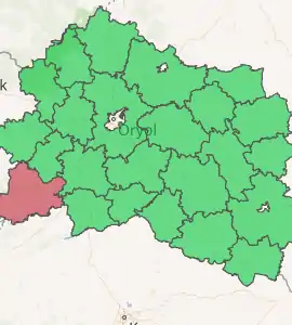 Dmitrovsky District (Russian: Дмитровский райо́н) is an administrative[1] and municipal[5] district (raion), one of the twenty-four in Oryol Oblast, Russia. It is located in the southwest of the oblast. The area of the district is 1,249.8 square kilometers (482.6 sq mi).[2] Its administrative center is the town of Dmitrovsk.[1] Population: 12,196 (2010 Census);[3] 15,841 (2002 Census);[7] 18,217 (1989 Census).[8] The population of Dmitrovsk accounts for 46.3% of the district's total population.[3]