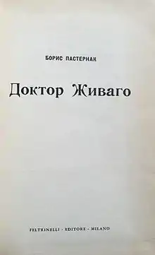 The printing by Mouton Publishers of the 1,000 copies of an adulterated Russian-language version, organized by the CIA, had typos and truncated storylines, and it was illegal, because the owner of the manuscript was Giangiacomo Feltrinelli,[16] who later put his name on the Mouton edition.[17][18]