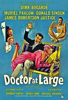 Doctor at Large is a 1957 British comedy film directed by Ralph Thomas, the third of the seven films in the Doctor series. It stars Dirk Bogarde, Muriel Pavlow, Donald Sinden and James Robertson Justice. It is based on the 1955 novel of the same title by Richard Gordon.