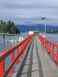 Life is simple in Dodge Cove, with no paved roads, no stores or shopping centres, and no automobiles.[4] It has been estimated to be among the ten smallest unincorporated communities in British Columbia.[1] Some community residents commute to work at Prince Rupert by crossing Prince Rupert Harbour.[2] The Prince Rupert School District contracts with the Metlakatla Ferry Services company to provide round trips between Prince Rupert and Dodge Cove and Metlakatla five days a week.[5] Dodge cove is also accessible by water taxi.[6] Community residents voted against the installation of a water filtration system in 2011 per concerns of "unaffordable user fees", and have been advised since 1988 to boil their water.[3]