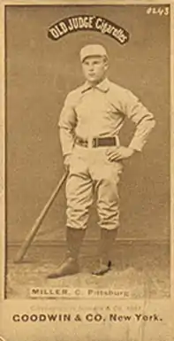 In 1883, an 18-year-old Miller debuted in professional baseball with the Harrisburg squad in the Interstate Association. A year later, he made the major leagues with the Pittsburgh Alleghenys of the American Association (AA). He spent ten seasons in Pittsburgh, staying with the team in 1887 when the team joined the National League (NL), ultimately becoming known as the Pirates.[1]