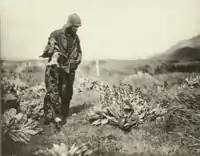 The timing for the start of the sledging journey was unfortunate: all the bitches were on the point of giving birth.[34] On 17 November, just after the three sledging parties separated, Gadget was killed because she had proved a poor puller and was judged to be tired out from carrying her pups. She was "cut up into about 24 rations counting 7 pups"[35] to be fed to the other dogs, but they did not seem to enjoy eating her.[36] Fusilier and Jappy followed soon afterwards; Jappy was fed to the other dogs along with the pups of Ginger Bitch. Betli disappeared on 27 November when the dogs were let off. Blizzard was injured by Mertz on skis on 18 December and had to be shot on 28 November.[24]