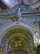 Similarly to basilicas, the building consists of three spacious richly decorated aisles, two balconies and, unusually, an organ. Its ark contains various Torah scrolls taken from other synagogues destroyed during the Holocaust.