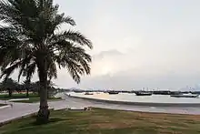 Doha Bay is the bay bordering Qatar's capital city of Doha. Doha was established on the south bank of the bay.[1] Landfill has been used to extend and expand the city to the north around the edge of the bay.[1] Doha Port, Corniche Street and the Doha Corniche, Al Rumaila Park and Sheraton Park border the bay. Palm Tree Island is located in the center of the bay.