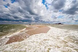 The Dolgaya Spit (Russian: Коса Долгая) is a sandy spit in the Sea of Azov. Length is 17 km, the width is about 500 m. The spit is located in Yeysky District of Krasnodar Krai, Russia. It separates Taganrog Bay from the Sea of Azov.