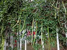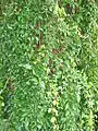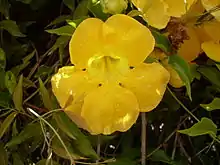 Dolichandra unguis-cati, commonly known as cat's claw creeper, funnel creeper,[2] or cat's claw trumpet,[2] is a rapidly growing climbing vine belonging to the family Bignoniaceae.[3] It affects all plant layers of the forest ecosystem spreading rapidly both vertically and horizontally.