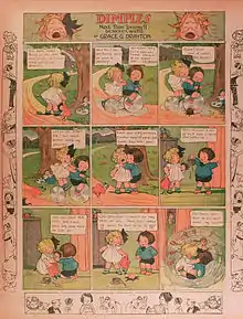 ![]() 1915 Dimples comic strip, showing Dimples and her friend Tommy | |