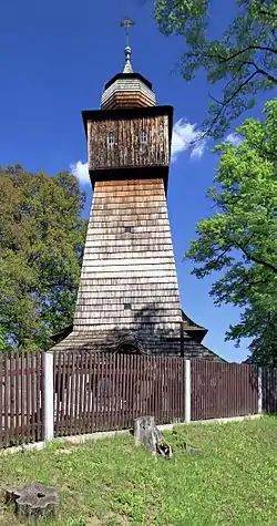 The most important landmark of the village is a wooden Ascension of the Lord Church. It was built in 1739 of larch wood and consecrated to the Ascension of the Lord, as opposed to the earlier patron. There is a Mother of God painting from 1860 in the church. It was painted by Polish painter and publicist Edward Świerkiewicz. Church is under permanent conservationist supervision and systematically conserved. There is a cemetery surrounding the church. The landmark had been depicted in the works of many artists like Franciszek Świder, Rudolf Żebrok and Tadeusz Wratny.