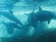 Throughout the day, visitors can feed the dolphins for a fee.[4] Trainers give informational speeches about the bottlenose dolphin.[5] All of the dolphins at dolphin cove have names, some being Jenever, C.J, Alpha, Calla, Naia, Griffith, Sparrow, Rascal, Dexter, Sasha, Tasha, and Tinker .