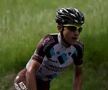 Domenico Pozzovivo (born 30 November 1982) is an Italian professional road racing cyclist, who currently rides for UCI WorldTeam Intermarché–Wanty–Gobert Matériaux.[9] His very small stature confer him with the qualities of a pure climbing specialist. He is most known for a victory in stage 8 of the 2012 Giro d'Italia, an overall victory in the 2012 Giro del Trentino, and is notable for his high education.[10]