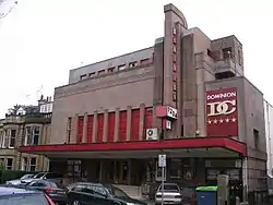 The Dominion Cinema is an independent Streamline Moderne cinema located in the Morningside area of Edinburgh, Scotland. The company was incorporated by William Cameron, on 13 May 1937 when he bought the land in Newbattle Terrace. The cinema was opened on 31 January 1938 originally seating 1300. It was designed by architect Thomas Bowhill Gibson in an Art Deco style.[1]