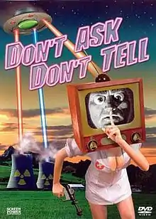 Don't Ask Don't Tell is a 2002 parody film directed by Doug Miles and written by famed gay screenwriter Tex Hauser. The 2002 winner of the Boston Underground Film Festival (BUFF) Bachus Award, The Neuchatel Sci-Fi Fest Audience Choice Award, and much critical acclaim for its razor sharp, if quite demented social satire, it was created by taking an old sci-fi movie—Killers from Space—overdubbing the soundtrack with humorous dialogue, and adding some new scenes, essentially turning it into an entirely different movie. The plot involves alien invaders with a machine that turns straight people gay.