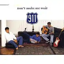 "Don't Make Me Wait" is a song by English boy band 911. It was released in the United Kingdom on 28 October 1996 as the third single from their debut studio album, The Journey (1997). It debuted and peaked at number 10 on the UK Singles Chart and at number 65 on the German Singles Chart. The song was the first of a string of consecutive top 10 hit singles in the UK.