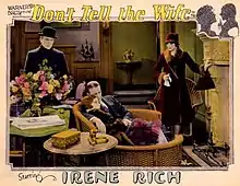 Don't Tell the Wife is a 1927 American silent romantic comedy film directed by Paul L. Stein and starring Irene Rich, Huntley Gordon and Lilyan Tashman.[1]