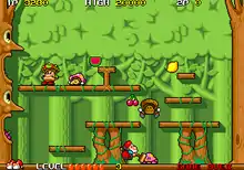 The game was later ported over to the Family Computer by IPL, and published by Taito on March 9, 1990.[1][3] A PC Engine version, also ported by IPL, was published by Taito later that same year on May 31.[1][4] The original arcade version is also featured on the Taito Memories Joukan and Taito Legends 2 arcade game compilations via emulation.[1] The Family Computer version was later re-released on a handheld made by My Arcade, along with Don Doko Don 2 and the Family Computer version of Chack'n Pop.[5]