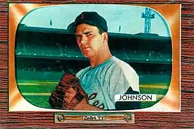 Johnson pitched both as a starter and in relief during his long, well-traveled career. His best season statistically was in 1954 with the White Sox. He won 8, lost 7, had a 3.12 earned run average, and finished in the American League Top ten in games pitched, saves, and shutouts.