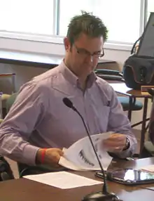 As the 39th Parliament of British Columbia began, McRae was not selected for the Executive Council by Premier Gordon Campbell. McRae was assigned to three parliamentary committees: Select Standing Committee on Finance and Government Services, Select Standing Committee on Aboriginal Affairs, and the Select Standing Committee on Health. In the parliament's second session he was also assigned to the Select Standing Committee on Children and Youth. McRae defended the government budget presented in September 2009 but was disappointed it ran a deficit, blaming an unexpected drop in revenue.[25] Nonetheless, McRae was able to participate in government funding announcements, like $347,400 for ecosystem restoration at the Mount Washington Alpine Resort,[26] and additional funds for sewer upgrades within his riding.[27][28] As a member of the Select Standing Committee on Finance and Government Services which introduced the Harmonized Sales Tax McRae faced significant attention from the Fight HST group organized to oppose the tax.[29][30] The group collected over 10,000 signatures from the Comox Valley riding on a petition opposing the HST and launched a recall initiative against McRae.[31] McRae sought legal advice against the recall initiative which he claimed were spreading mis-information, specifically that the group was claiming 12,000 people in his riding had signed the petition against the HST, not 10,000 people.[32] However, the effort to recall McRae eventually failed, having only collected 5,181 of the 19,000 signatures required.[33] Despite McRae supporting the HST, tax payers provincially and in his own riding did not. The subsequent province-wide HST referendum resulted in 14,759 votes (53%) to extinguish the HST system in McRae's Comox Valley riding, with 55% province-wide voting to extinguish the HST.[34]