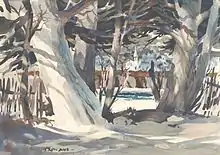 After retiring from architecture, O'Neill took up watercolor painting more seriously. He was taken on as a pupil of Milford Zornes, and eventually became a signature member of Watercolor West, the National Watercolor Society, and the American Watercolor Society,[2] and was the first Inland Empire resident to ever be accepted into the American Watercolor Society.