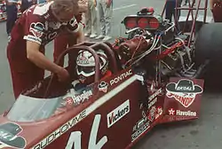 ![]() Prudhomme in his dragster before a run in 1992 | |
