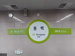 Dongbaek station (Korean: 동백역; Hanja: 冬柏驛) is a station on the Busan Metro Line 2 in U-dong, Haeundae District, Busan, South Korea. The station is located near the Dongbaekseom Island.